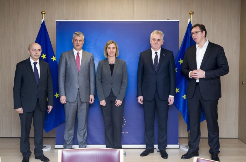 Delegacionet e Kosovës dhe Serbisë, në prani të shefes së atëhershme të diplomacisë evropiane Federica Mogherini, nënshkruan marrëveshjen për Telekomunikacionin, marrëveshjen për Energjinë, për lirimin për qarkullim të urës mbi lumin Ibër në Mitrovicë dhe asociacionin e komunave me shumicë serbe.