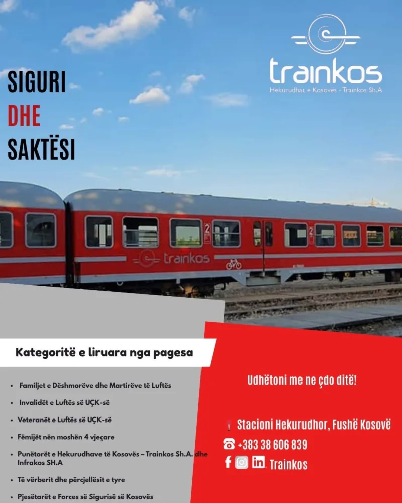 Udhëtimi me tren në linjën Prishtinë–Pejë vazhdon të mbetet një nga alternativat më të lira dhe praktike për qytetarët. Por ajo që shumë pak e dinë është se disa kategori përfitojnë udhëtim plotësisht falas nga Trainkos.