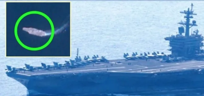 Aeroplanmbajtësja me energji bërthamore nuk ishte e dukshme në imazhe deri në atë moment.
