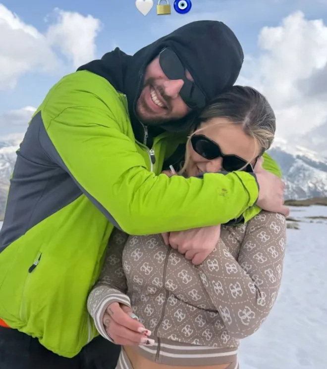 Në fotografinë e shpërndarë, Baby G shfaqet e buzëqeshur dhe e lumtur në krahët e partnerit, por pa zbuluar identitetin e tij. Djali në fjalë mbetet i paidentifikuar, pasi fytyra e tij është e mbuluar me syze dielli dhe kapuç.