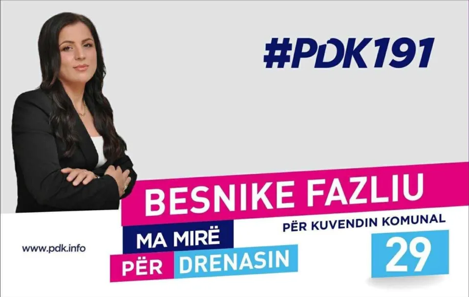 Me numër 29 në listën e Partisë Demokratike të Kosovës, Prof. Besnike Fazliu garon për Asamblenë Komunale. Ajo vjen nga familja e dëshmorëve Fazliu, simbol i sakrificës dhe krenarisë kombëtare, duke i dhënë listës së PDK-së një vlerë të veçantë morale dhe profesionale.