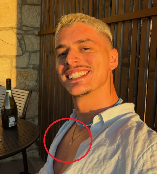 Në një selfie vërehet se ai ka të vendosur një qafore ku theksohet shkronja “F”.