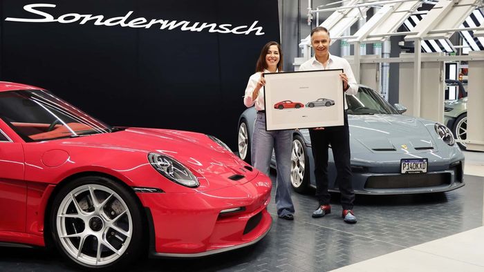 Klussmann dhe Taher morën një ftesë për në selinë qendrore të kompanisë në Zuffenhausen, një fotografi të dy makinave dhe një kuti që përmban mostra të ngjyrave të brendshme dhe të jashtme të automjeteve të tyre përkatëse.