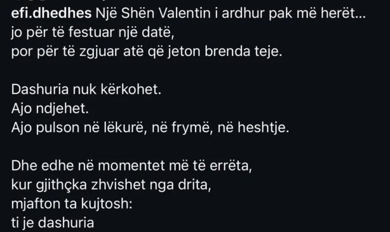 Influencerja e njohur Efi Dhedhes ka tërhequr vëmendjen me një postim të ri në rrjetet sociale, i publikuar përpara Shën Valentinit.
