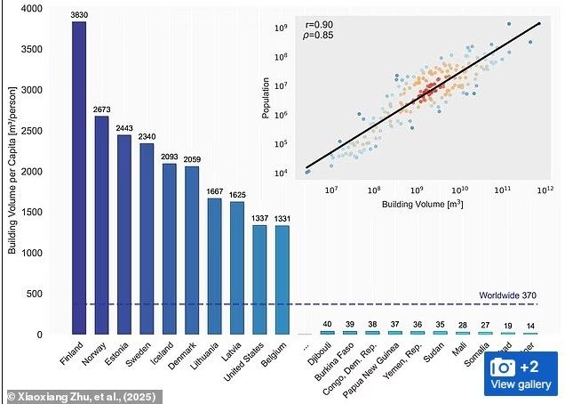 Finlanda, për shembull, kryeson tabelën e renditjes në Evropë me mbi 3,900 metra kub vëllim ndërtesash për person dhe renditet rregullisht si vendi më i lumtur në Evropë.