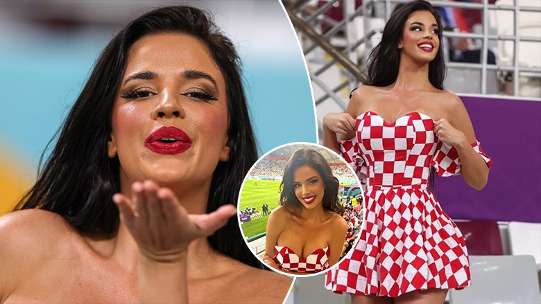 Super tifozja kroate Ivana Knoll ka ndjekur ndeshjet e fazës së grupeve, duke shkaktuar bujë pasi doli me një veshje të mrekullueshme me kapuç dhe një mini fustan me kuadrate që simbolizojnë flamurin kroat.