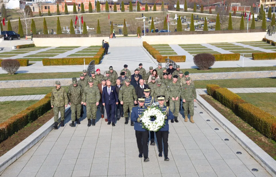 Forca e Sigurisë së Kosovës në kuadër të aktiviteteve për shënimin e 28 vjetorit të “Epopesë së UÇK-së”, me oficerë të lartë të FSK-së dhe Ministrisë e Mbrojtjes, kanë bërë homazhe në Kompleksin Memorial në Prekaz në nderim të sakrificës së Komandantit legjendar Adem Jashari, familjes Jashari dhe të gjithë të rënëve për liri.