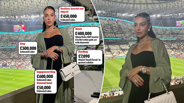 Georgina Rodriguez vuri një sërë bizhuterish që raportohet se kanë një vlerë totale prej më shumë se 1.8 milionë funte (dy milionë euro) në tribunat e Kampionatit Botëror të Katarit të martën.