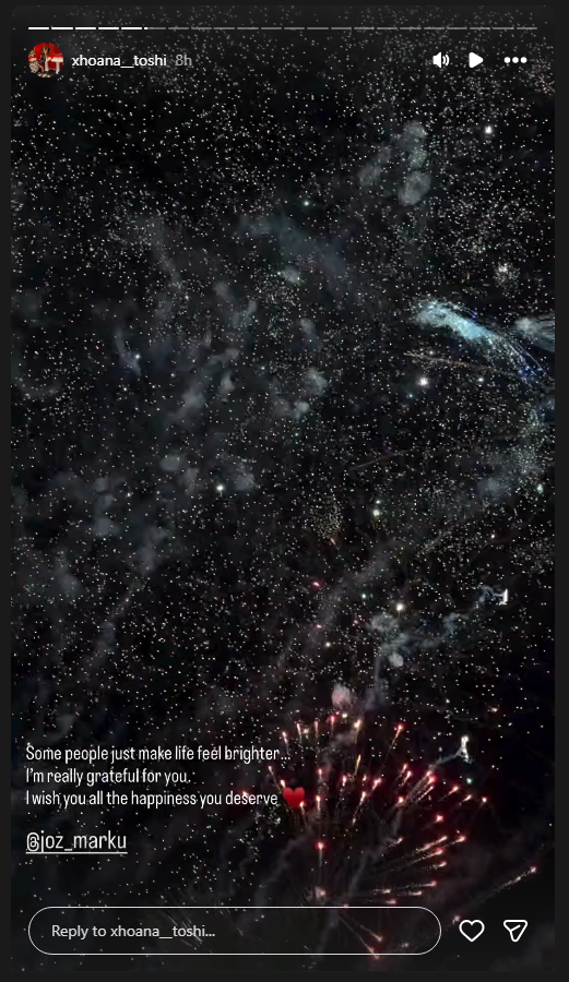 “Disa njerëz thjesht e bëjnë jetën të ndihet më e ndritshme. Jam vërtet mirënjohëse për ty”! Të uroj gjithë lumturinë që meriton @joz_marku”!/