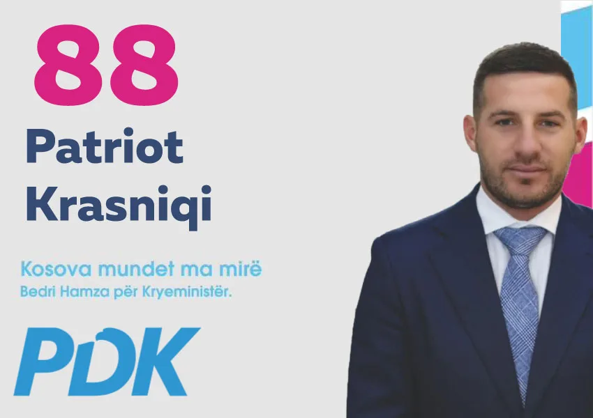 Patriot Krasniqi, kandidat për deputet në Kuvendin e Kosovës nga radhët e PDK-së, është një i ri i përkushtuar ndaj të ardhmes së rinisë dhe mirëqenies së qytetarëve.