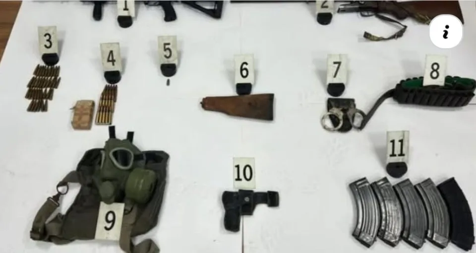 Njësitë policore gjatë kontrollit kanë gjetur dhe konfiskuar: 1 pushkë automatike, 1 pushkë gjahu, 50 fishekë, 1 kondak pushke, 1 palë pranga, 1 mbajtës pushke, 1 maskë kundër helmeve me çantën e saj, 1 këllëf arme dhe 5 karikatorë të zbrazët.