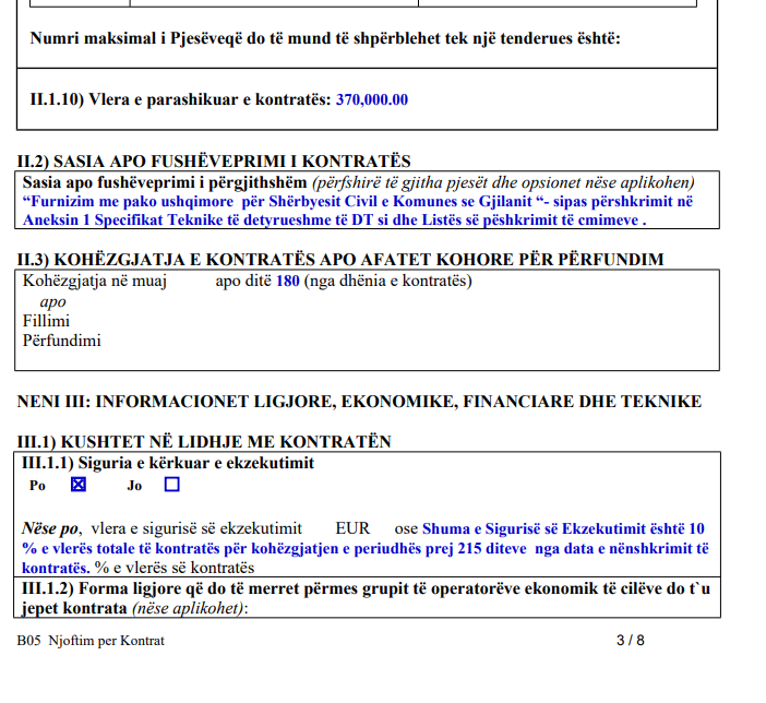 Tenderët e dorëzuar në formë fizike do të refuzohen për arsye administrative. Po ashtu, operatorët ekonomikë që aplikojnë si grup duhet të paraqesin një marrëveshje për themelimin e grupit, ku do të përcaktohen përgjegjësitë dhe detyrimet e anëtarëve të grupit, si dhe roli i liderit të grupit gjatë procedurës.