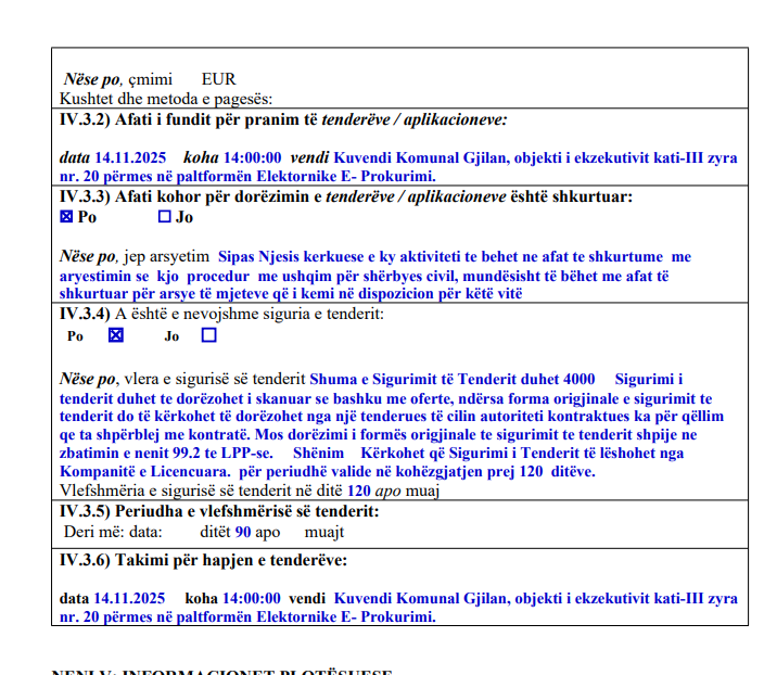 Në njoftim theksohet se të gjitha ofertat duhet dorëzuar vetëm përmes platformës elektronike të prokurimit.
