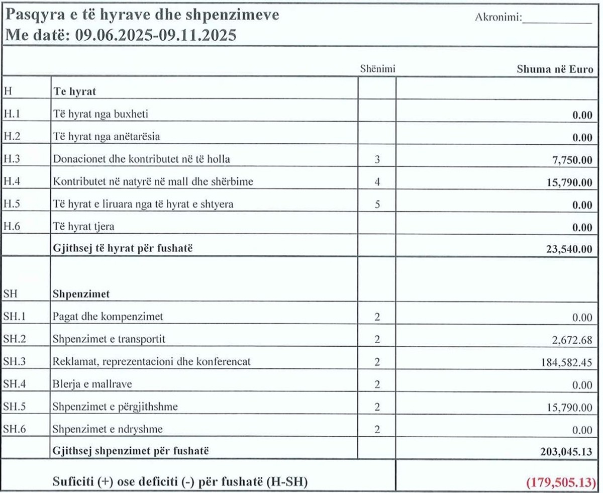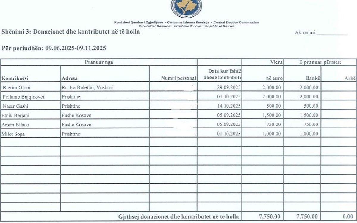 Po ashtu, partia ka pranuar edhe donacione në të holla në vlerë prej rreth 8 mijë euro nga gjithsej gjashtë donatorë.