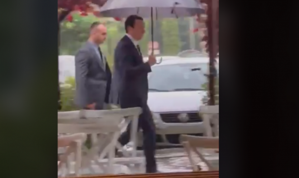 Kryeministri i Kosovës, Albin Kurti është parë me çadër teksa ecte rrugëve të Prishtinës.