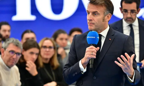 Epoka është shënuar nga “shkelja” e ligjit ndërkombëtar dhe nga marrja e kontrollit nga ligji i më të fortit, tha presidenti francez, i cili mbante syze dielli për shkak të një problemi me sytë.