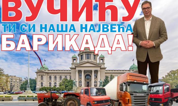 “Vuçiq ti je barrikada jonë më e madh”, thuhet në mbishkrimin e fotografisë.