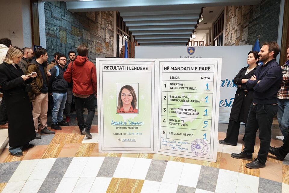 Me një “librezë” me plotë njësha, e të vendosur fotografinë e ministres së Arsimit, Arbërie Nagavci, Partia Socialdemokrate ka zhvilluar një aksion simbolik sot në Bibliotekën Kombëtare, ku pritej të mbahej fjalimi i kryeministri, Albin Kurti dhe Nagavcit.
