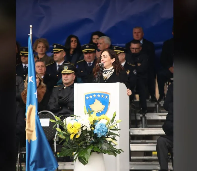 Presidentja e Kosovës Vjosa Osmani në ceremoninë e parakalimit të Trupave të Forcës së Sigurisë së Kosovës dhe Policisë së Kosovës në 18 vjetorin e pavarësisë ka thënë se se askush s’mund ta njollos luftën e UÇK-së, e cila ishte lufte e drejtë, çlirimtare e udhëhequr nga e drejta për liri dhe shtet.