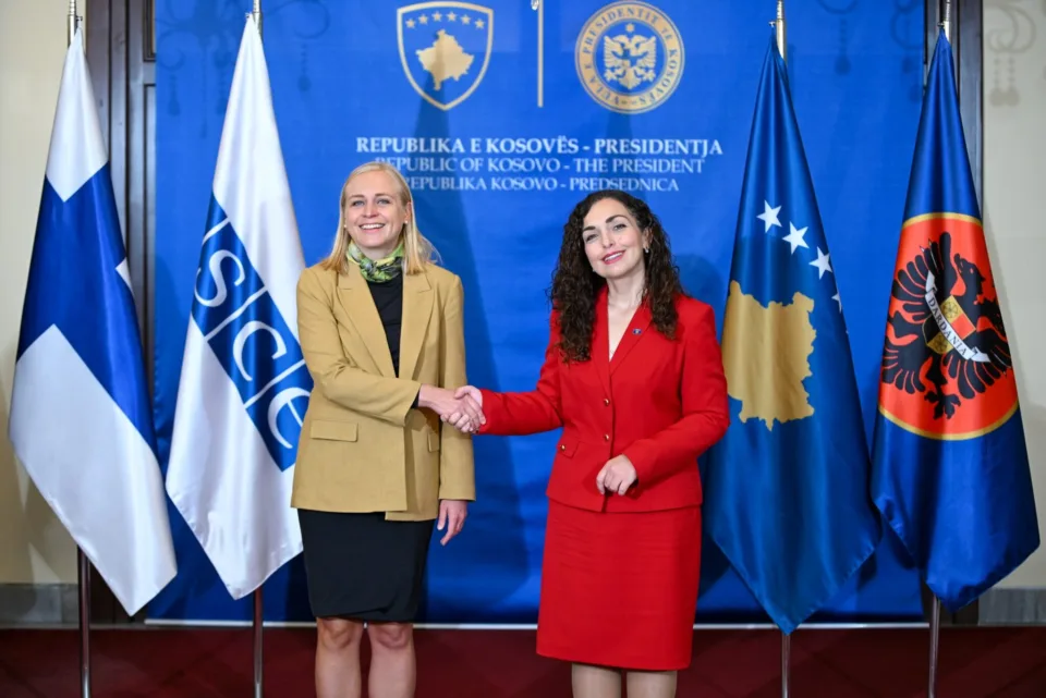 Presidentja e Republikës së Kosovës Vjosa Osmani, priti sot në takim Ministren e Punëve të Jashtme të Finlandës, njëkohësisht Kryesuese të OSBE-së Elina Valtonen.