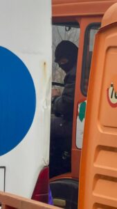 Persona të maskuar janë duke qëndruar te kamionët në fshatin Rudarë, të cilët u vendosën në mes të rrugës si barrikada.