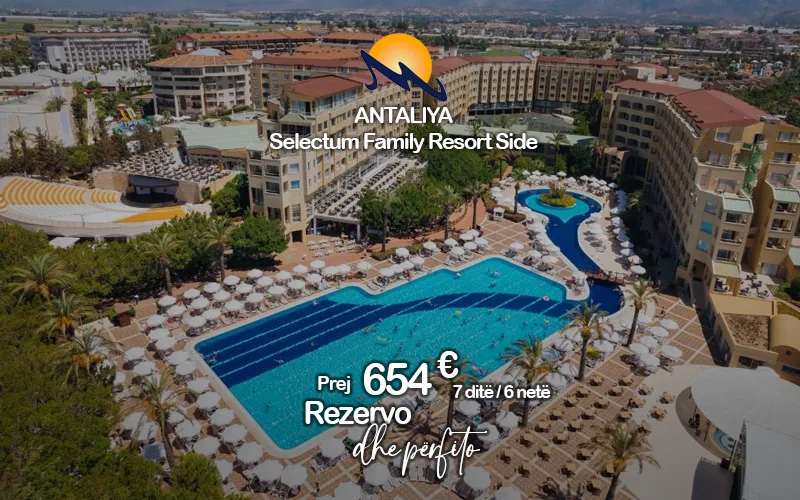 Nën moton “VERA 2025 është VERA FIBULA”, agjencia prezanton ofertën e re për pushime në Selectum Family Resort Side, me shërbim Ultra All Inclusive dhe çmime që nisin nga vetëm 654 euro për person, për një qëndrim prej 7 ditësh / 6 netësh.