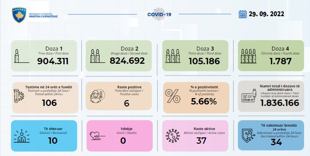 Gjatë këtyre orëve nuk është regjistruar asnjë viktimë, teksa janë shëruar 10 pacientë.