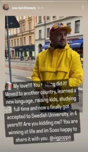 Ajo ka postuar një foto të parnterit ku shkroi fjalët më të bukura për sukseset e tij, kështu duke treguar se së fundmi është pranuar në Fakultetin e Suedisë.