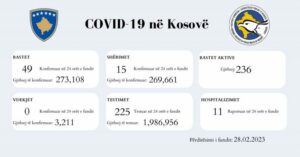 Instituti Kombëtar i Shëndetësisë Publike të Kosovës raporton për 49 raste të reja me Covid-19 në Kosovë.