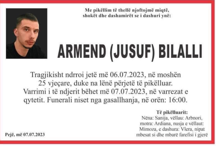 I riu, Armend Bilalli, i cili humbi jetën tragjikisht dje pasi vetura e tij u aksidentua rëndë me trenin në fshatin Videjë të Klinës, raporton Gazeta Sinjali.