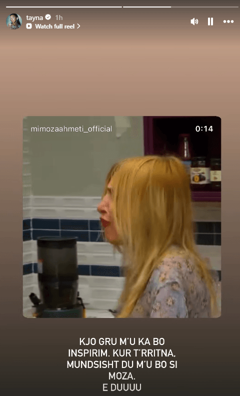 Tayna ka reaguar përmes një postimi në InstaStory, ku ka shpërndarë videon dhe ka shprehur vlerësimin e saj për Ahmetin.