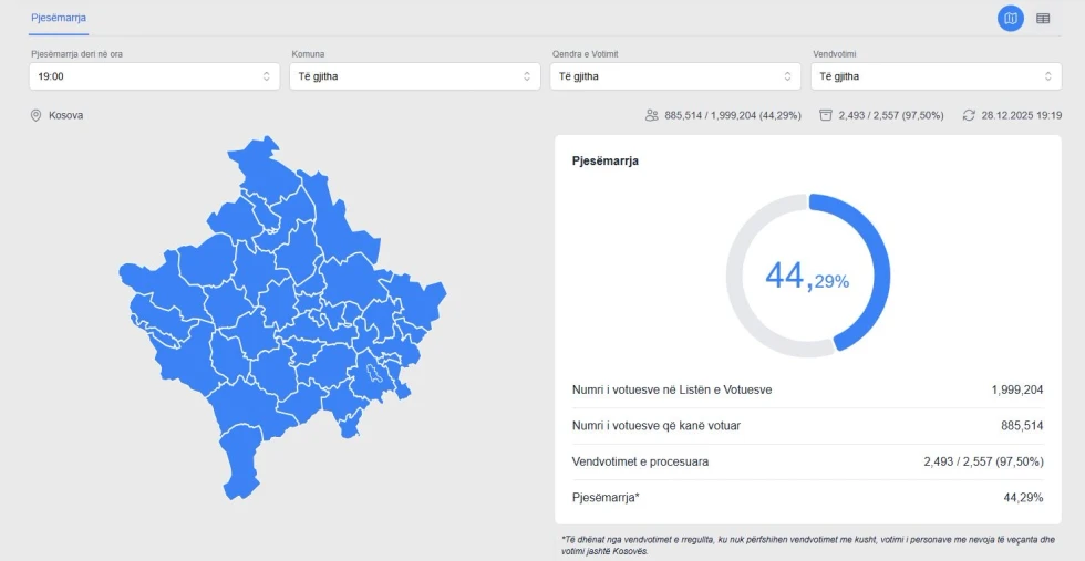 Zgjedhjet parlamentare të 28 dhjetorit kanë hyrë në histori sa i përket daljes së qytetarëve në vendvotimet brenda Kosovës. Sipas procesimit të më shumë se 97.5 për qind të vendvotimeve, të drejtën e votës e kanë shfrytëzuar 885, 514 qytetarë.