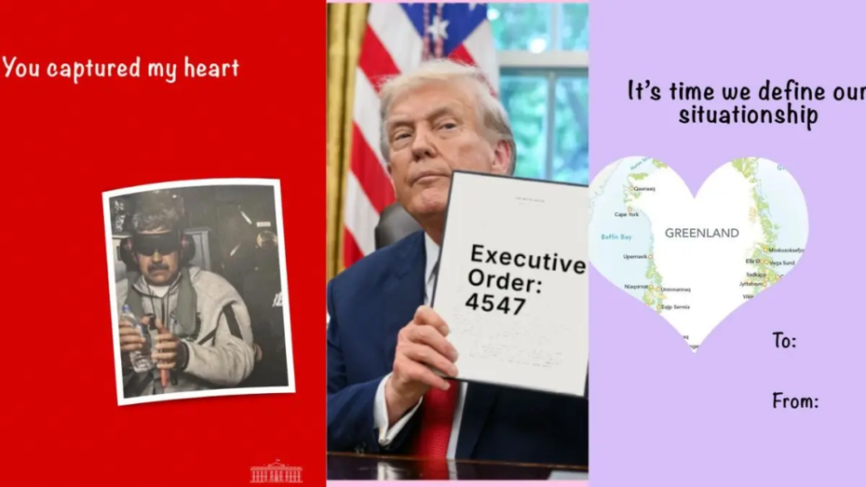 Sot, 14 shkurt, në Ditëm e Shën Valentinit, Shtëpia e Bardhë publikoi në X një postim të pazakontë të titulluar “Made just for you”. Postimi përbëhet nga disa imazhe që kombinon mesazhe tipike të Ditës së Dashurisë me referenca të qarta politike.