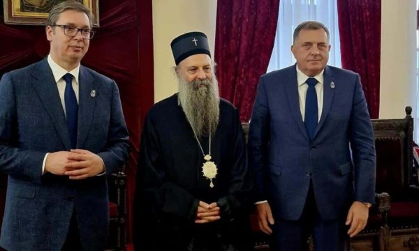 Ndërkaq, takim pati edhe me Patriarkun Porfrij dhe anëtarët e Sinodit të Kishës Ortodokse Serbe për të ndarë “shqetësimet e tij për të gjitha sfidat dhe presionet me të cilat përballet populli serb në Kosovë dhe shteti serb”.